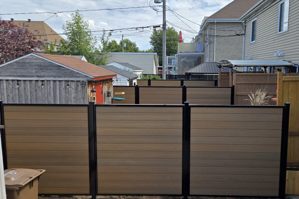 2. Clôture hybride en composite (acier + composite) : effet bois naturel