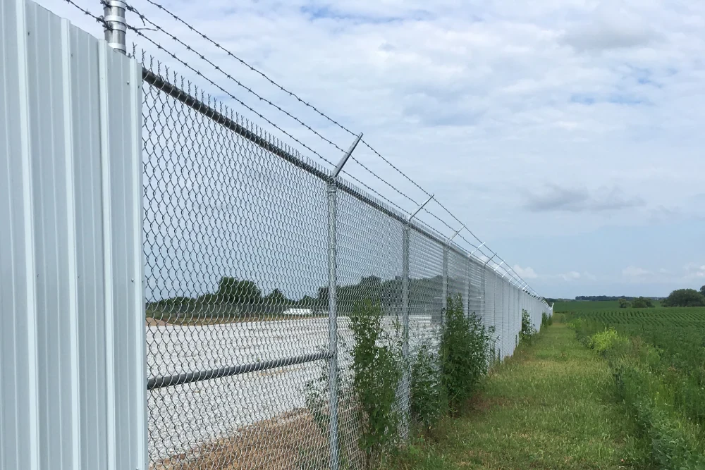 - Ajouts d’intimité : masquez bennes, unités CVC/HVAC ou aires d’entreposage grâce à des enceintes et à des lattes d’intimité insérées dans la maille losangée.